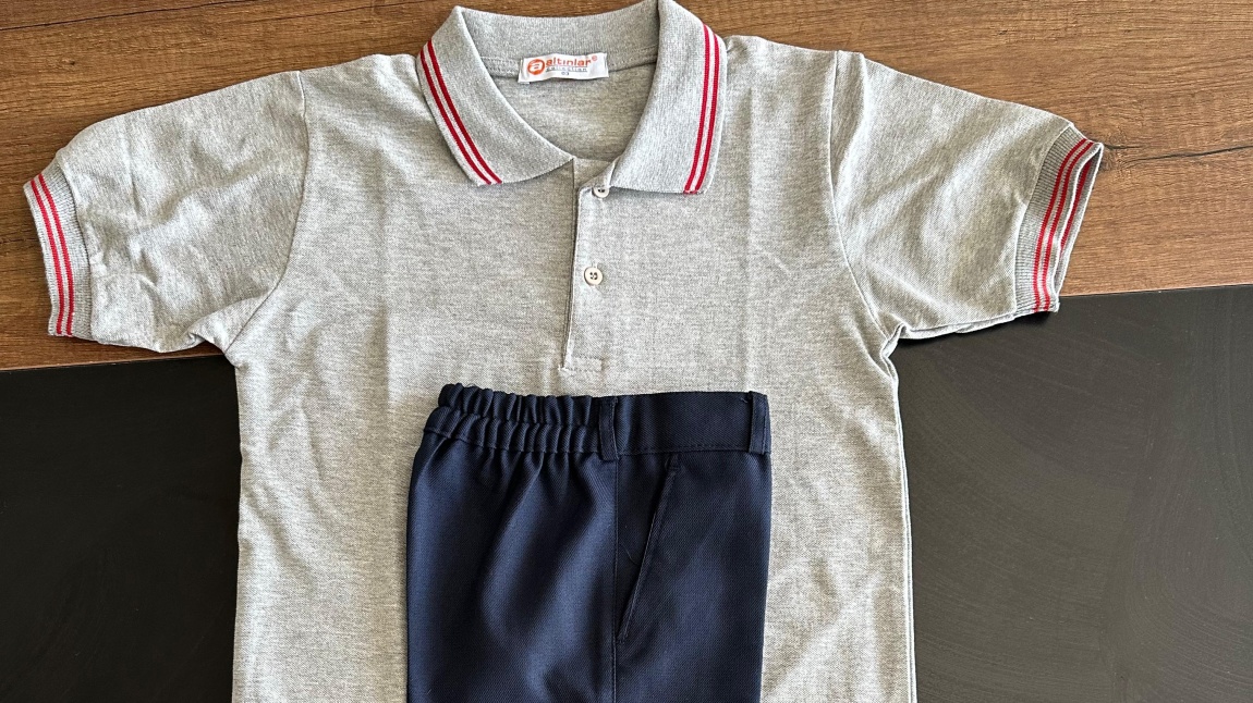 Kız öğrenciler için doğal, pamuklu materyallerden yapılmış kumaşlı kırmızı kareli etek, erkek öğrenciler için de lacivert doğal ve sağlıklı kumaşdan yapılmış pantolon